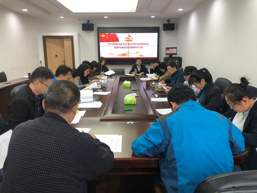 会议第一个议程,张瑾副院长带领大家学习了《中共教育部党组关于学习贯彻习近平总书记等中央领导同志教师节重要讲话精神的通知》,从教师地位、教师标准、教师队伍建设三方面,带领大家领会了习近平总书记重要讲话对教师队伍建设的重大意义;通过加大对受表彰教师的广泛宣传,树立模范典型,充分发挥优秀教师在教师队伍建设中的“头雁效应”;德赢官网Vwin广大教师要牢记习近平总书记嘱托,围绕为党育人,为国育才,以德施教、立德树人,刻苦钻研、教学相长,尊重宽容、严爱相济,做党和人民满意的“四有”好老师。