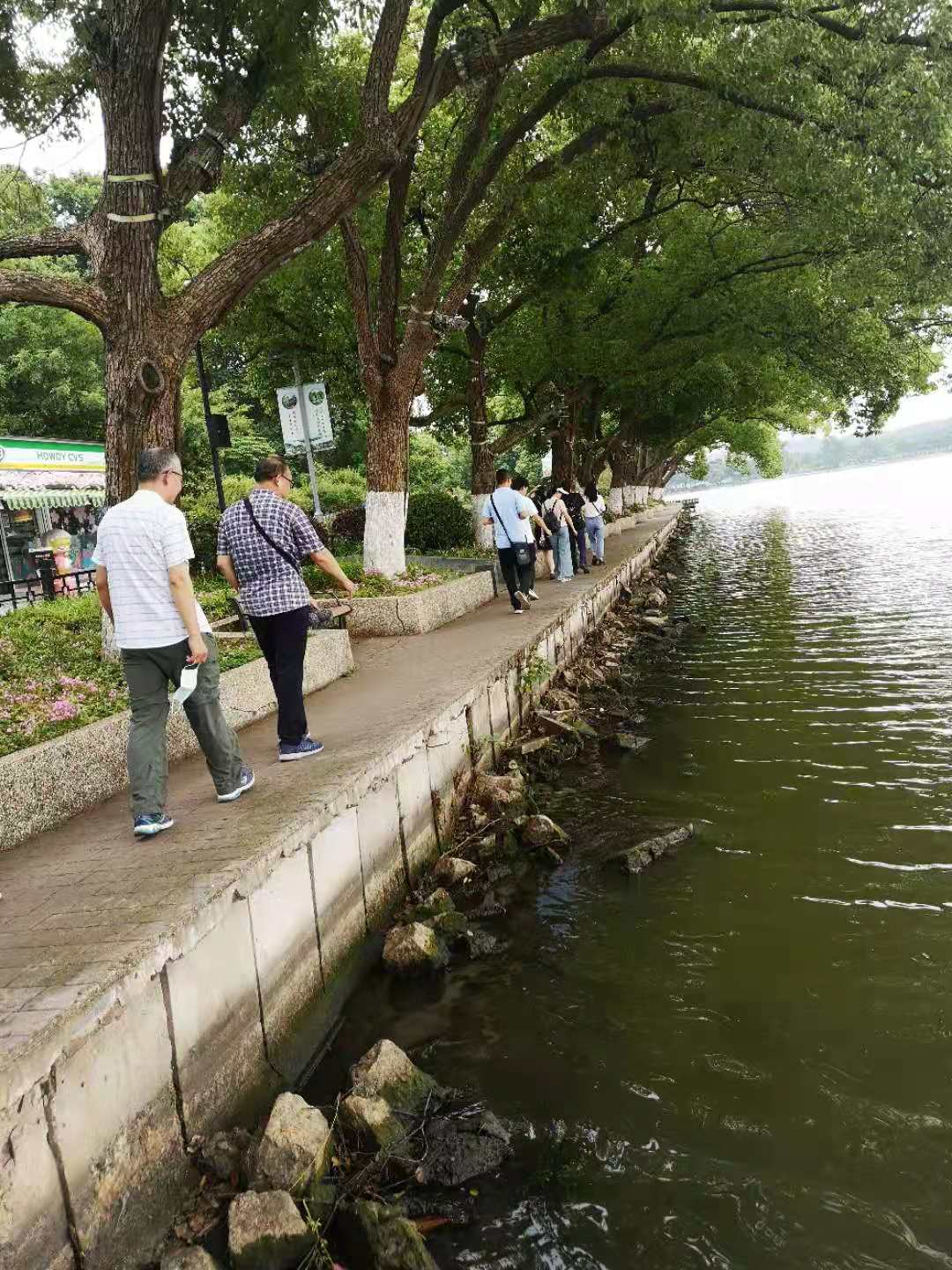 6月初的南京,天气已经有些炎热,但这并没有影响大家参与活动的热情。教师们兴致勃勃的来到风景宜人的玄武湖,漫步在风光旖旎的玄武湖畔,欣赏着美丽的湖光山色,呼吸着新鲜的空气,细细品味“后湖烟柳”的美妙,凉风习习,令人心旷神怡。健步行活动从玄武门出发,依次经过环洲、樱洲、翠洲、梁洲、环洲,最后返回玄武门。离开严谨的教学课堂,来到绿树丛荫的自然界,老师们放松下来,三俩畅谈,意境优美。
