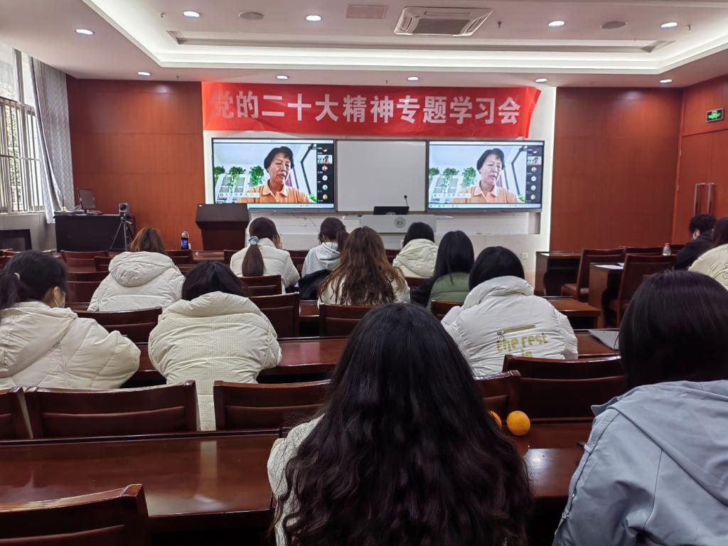 徐凤君结合中国共产党百年奋斗历程的四个时期,分享了自身成长经历和感悟,重点讲述了自愿报名参加“高校银龄教师志愿西部计划”的初心初衷和在支援新疆政法学院教育事业发展方面取得的阶段性成绩。徐凤君说,时代各有不同,青春一脉相承。她围绕党的二十大报告中有关青年工作内容和习近平总书记关于青年工作重要论述,通过一个个小故事讲述了自己到江西井冈山地区泰和县插队的感人经历,以及在南农教学岗位上成长的点点滴滴,对青年学生提出了殷切期望,希望同学们要保持初生牛犊不怕虎的劲头,不懂就学,不会就练,没有条件就努力创造条件,立志做有理想、敢担当、能吃苦、肯奋斗的新时代好青年。2021年,年近古稀的徐凤君老师,积极响应党和祖国的号召,到最需要人才和知识的地方继续发光散热,今年服务期满后她又主动申请延期一年,这充分彰显了徐老师作为一名退休教师党员、一名教育工作者的责任和担当,诠释了“为党育人、为国育才”初心使命。“莫道桑榆晚 为霞尚满天”就是她退休生活的真实写照。她的专题辅导报告是一堂政治理论学习的党课,是一堂党史学习教育的党课,更是一堂党性锤炼教育的党课,让广大青年学生从退休老教师身上,从身边的党员榜样中汲取了精神力量。