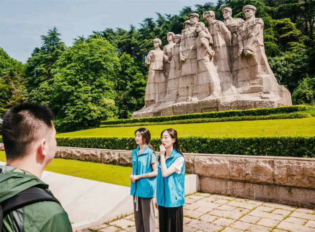 随后,师生们分成四条路线,分别到雨花台烈士纪念馆、西殉难处和公安英烈墙、雨花英烈群雕和丁香树、知名烈士墓和东殉难处进行雨花英烈事迹与精神的现场教学,来自6所高校的青年学子化身为雨花台烈士纪念馆的专职讲解员。其中,来自我校顾衡特称党支部的邓艺萱和赵芃青为大家讲解了雨花英烈群雕背后的故事,为同学们带来了融入自身感悟的“实境教学”,形式新颖,内容动人。