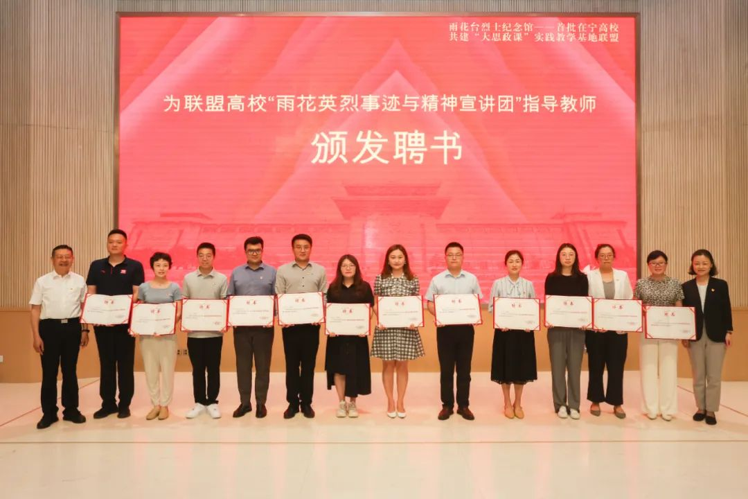 徐子敏和汪晓燕为联盟高校“雨花英烈事迹与精神宣讲团”指导教师颁发聘书。