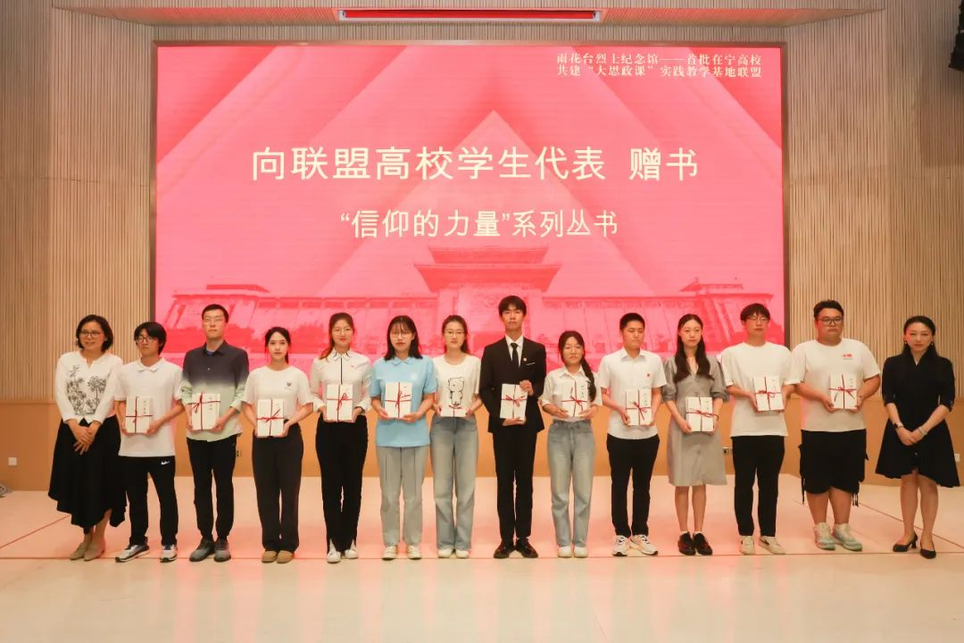 邹燕和张静静向各高校学生代表赠送“信仰的力量”系列丛书。