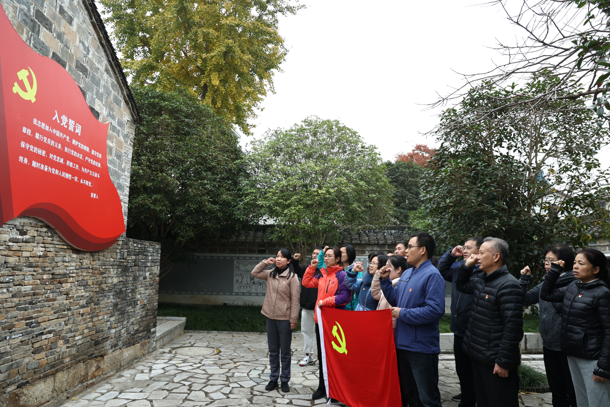 在吴彦宁副书记的领誓下,全体党员同志面对党旗,重温入党誓词,追忆入党初心。通过此次现场实践的主题党日活动,全体党员近距离地接受了廉政教育和革命传统教育,大家纷纷表示要继续弘扬前辈们艰苦奋斗、拼搏进取的革命精神,为实现中华民族伟大复兴的中国梦而努力奋斗。