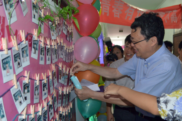 主楼前,热情的学长学姐们接过学弟学妹们的行李,引领他们来到报道室。初入大学,学弟学妹们略显紧张,但是来到报到室,这种感觉顿然消失。这里是一个充满温馨、放松的小教室,在迎新迎新工作开展前,这里已在学长学姐精心的装饰下改变了容貌。门外墙上挂起了由学长拍摄的新生照片,寄语栏上贴满了学长学姐们的祝福叮嘱,闪烁的文字背景展示了德赢官网Vwin的永不停歇的青春活力;门内墙上的手工作品,黑板上的简略温馨的构图,无不表示了学长学姐对新伙伴的欢迎。
