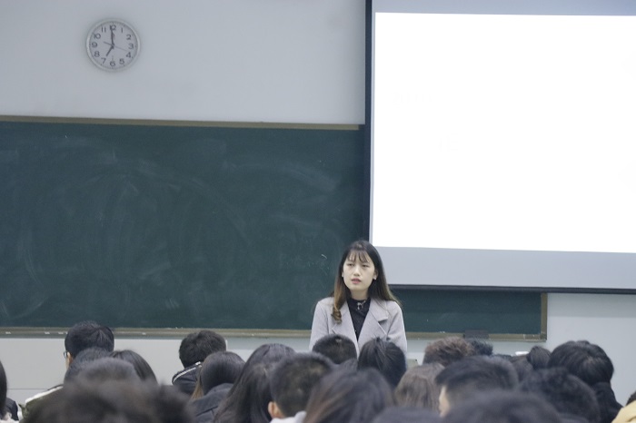紧接着,他就雅思考试的四部分展开,分别是听力、阅读、口语和写作。在介绍了雅思听力时,他着重介绍了交谈时的话题范围以及在这一环节该如何听内容的侧重点。在介绍阅读部分时,他主要分享了一些阅读和做题小技巧。随后在介绍写作部分时,他对写作过程中应注意什么问题给出了自己的见解。在介绍口语部分时,他就口语部分所包含的三个方面——个人简介以及回答、个人陈述、双向讨论展开讲解。